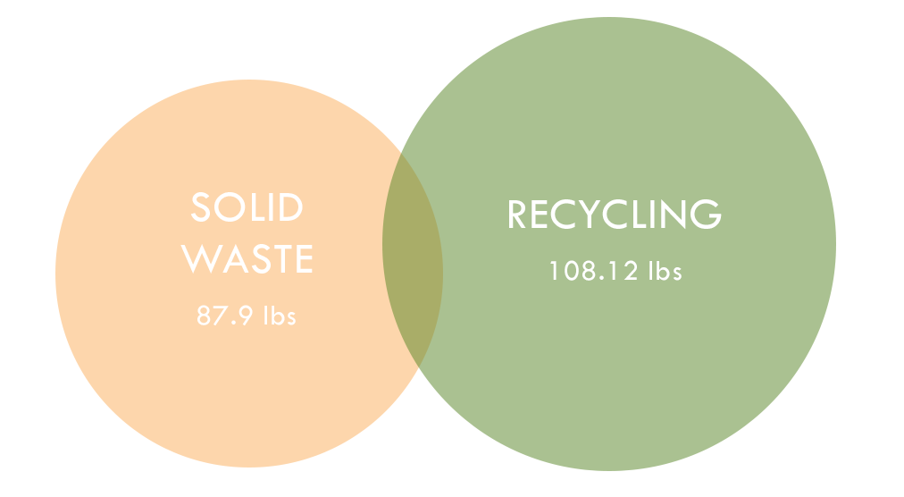 Over the course of 5 weeks, our office collected 196.02 pounds of material waste, which broke down to 108.12 pounds of recycling and 87.90 pounds of waste.