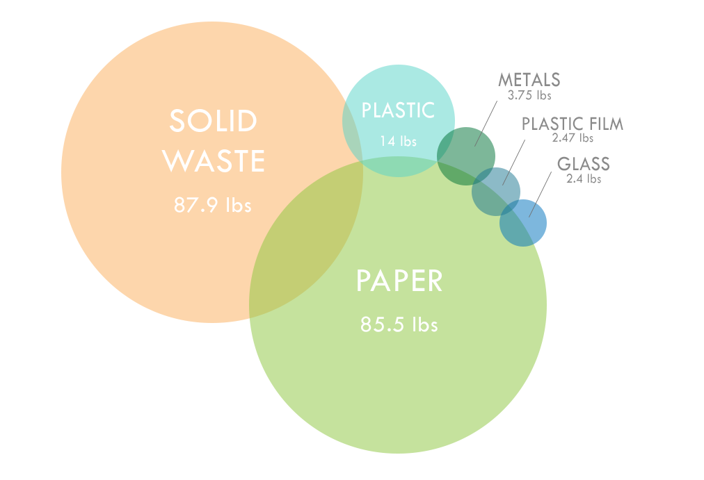 To understand this, our office decided to conduct a Waste Audit in order to understand how we are producing waste and impacting the environment. The experiment lasted for about a month and tasked us with documenting our recycling and waste production each day. The main goal was to give us an accurate representation of individual material usage and with this number, we could determine how much waste we could potentially divert from local landfills by utilizing composting.